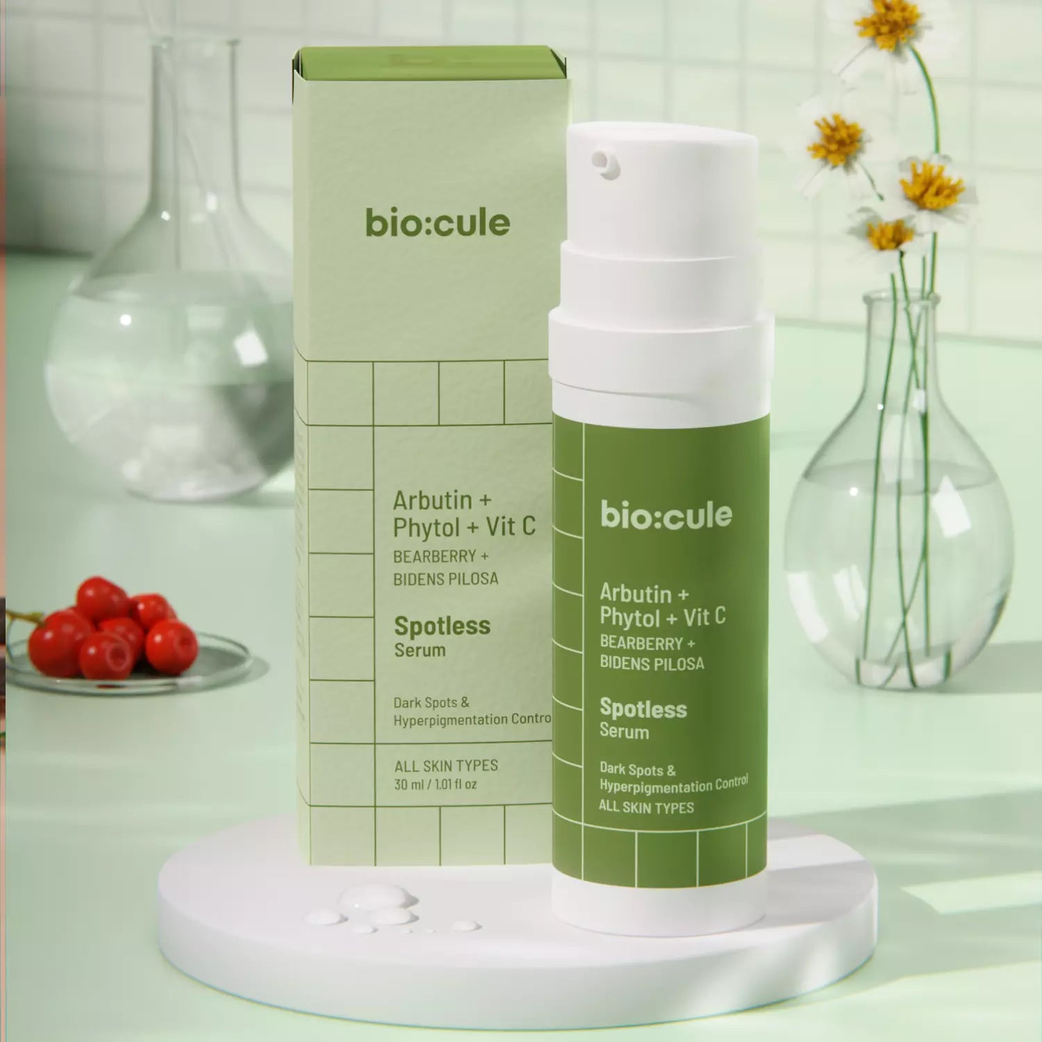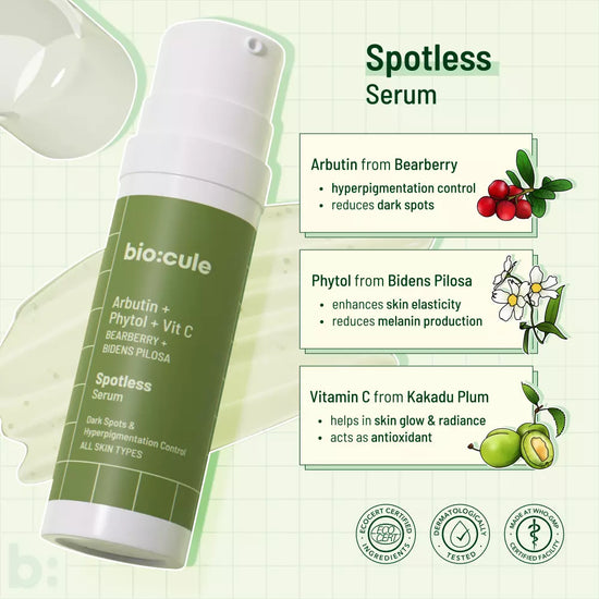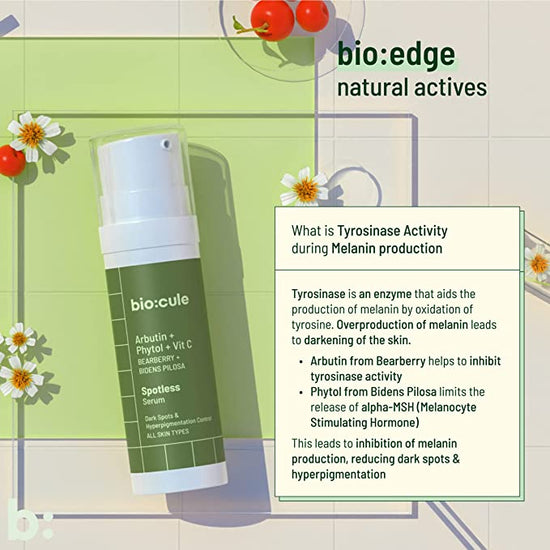 A unique combination of Arbutin, Phytol & Vitamin C derived from Bearberry, Bidens Pilosa, and Kakadu Plum which work together to gently exfoliate and limit melanin production, thereby reducing dark spots & hyperpigmentation and revealing a radiant and even skin tone.